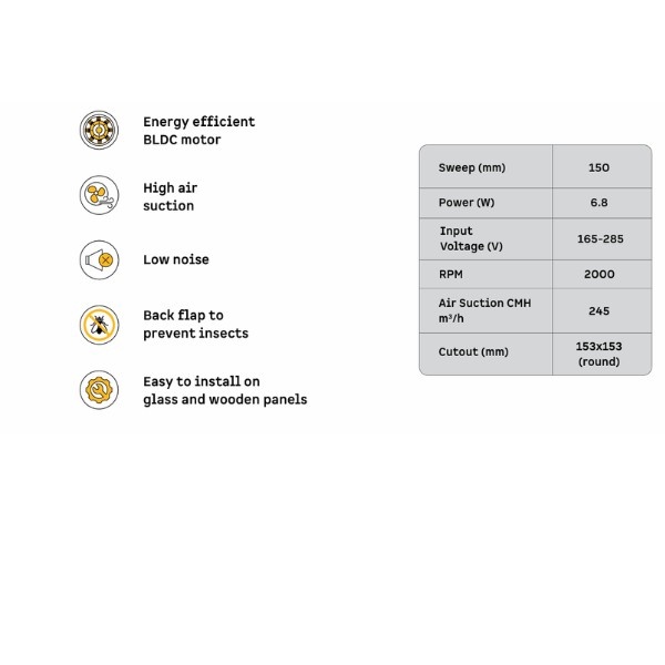| Blade Sweep | 150 mm (6 inches) engineered for high-volume air suction |