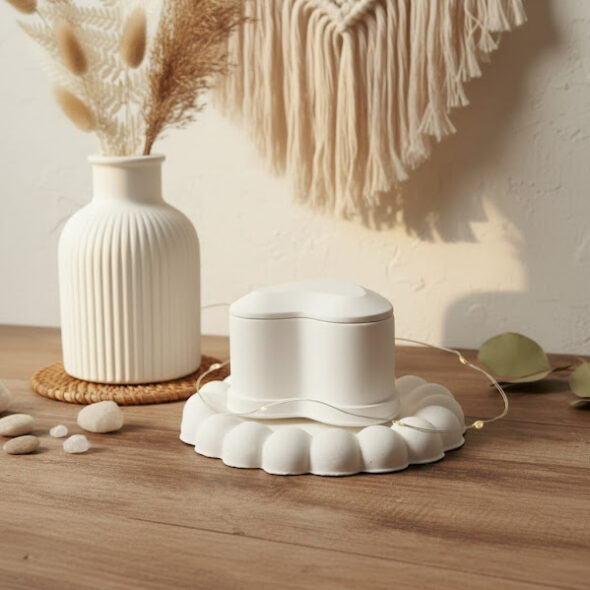 Handmade gypsum décor item with smooth matte finish.