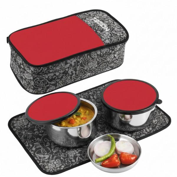 Features 2 double walled insulated steel containers that keep your meals hot or cold for a longer duration. |