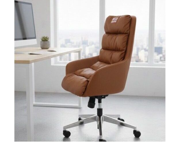 Sleek grey mesh paired with a mirror-finish chrome base offers a high-end look for modern office cabins. |