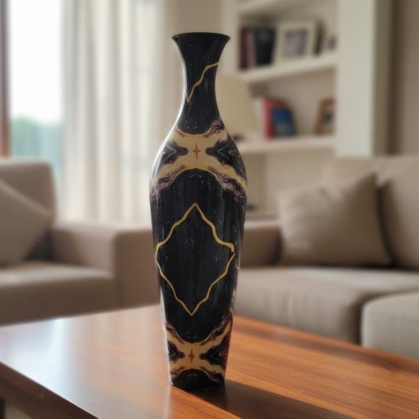 Marbled Art Series Slender, tall-form vases showcase intricate marble patterns in black, gold, and white swirls for a high-fashion gallery look.